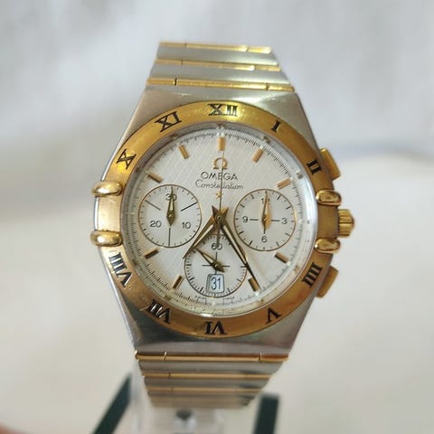 18 karat guld armbåndsur, arvet fra min far. Købt i 2002. Brugt sporadisk, servicemærker på indersiden af urkassen. Datoen hopper én dag frem. Urværket fungerer godt og præcist. Inkluderer den originale spænde. Brugsspor ses især på remmen.