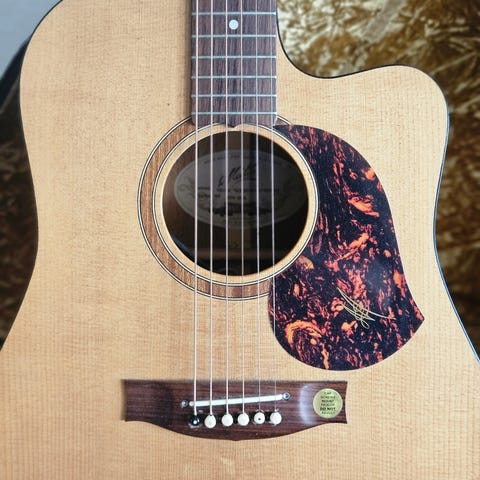 Takamine GSD11MCE-NG akustisk‑elektrisk cutaway guitar, 2022, mad ogkropp i mahogni natur glänz, med batteri og hard case, vægt 2357 g, to enheder, produceret i Kina, i næsten ny stand. Klik på den blå "gå til varen" knap, for at købe eller byde på denne vare. Den samlede pris vil blive vist inden du afgiver dit bud.