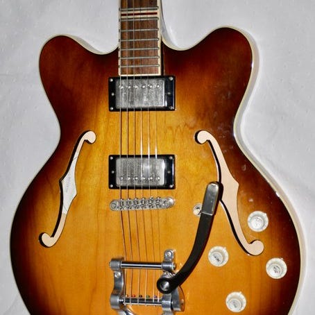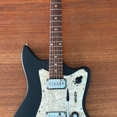 Welson KINTON, Italiensk model fra 1960, en enkelt solidkrop-guitar i meget god stand, testet og operationel, med blød etui, vægt 5 kg. Klik på den blå "gå til varen" knap, for at købe eller byde på denne vare. Den samlede pris vil blive vist inden du afgiver dit bud.