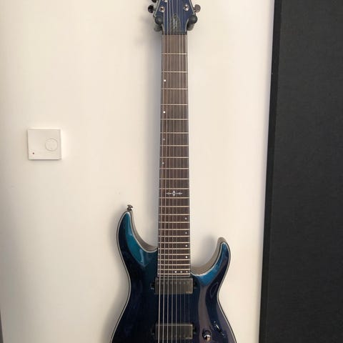 Schecter Demon 7 FR CRB 7‑strengs elektrisk guitar i Crimson Red Burst med bolt‑on ahornhals, krop i sæ og top i flamestavet ahorn, rosewood gribebræt, 26,5" scale, 24 X‑jumbo frets, creme binding og inlays, Floyd Rose Special tremolo, Schecter hardware, to aktive Seymour Duncan Designed HB‑105 humbuckers, kontroller: tone, volme og 3‑position switch, sort krom hardware, Floyd Rose nut, vægt ca. 6 kg, helt ny uden tilbehør, ét eksemplar. Klik på den blå "gå til varen" knap, for at købe eller byde på denne vare. Den samlede pris vil blive vist inden du afgiver dit bud.