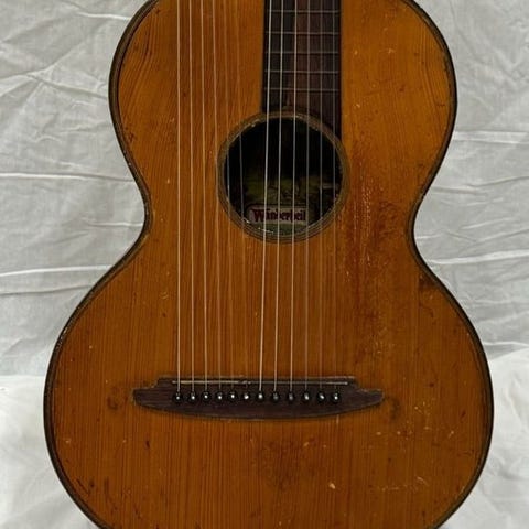 Joseph Lété 1833 Romantic guitar, et enkelt franskproduceret instrument med gran top og kirsebærtræ bag- og sider, i meget god stand, testet og spilbar, inkl. originalt trækasse. Klik på den blå "gå til varen" knap, for at købe eller byde på denne vare. Den samlede pris vil blive vist inden du afgiver dit bud.