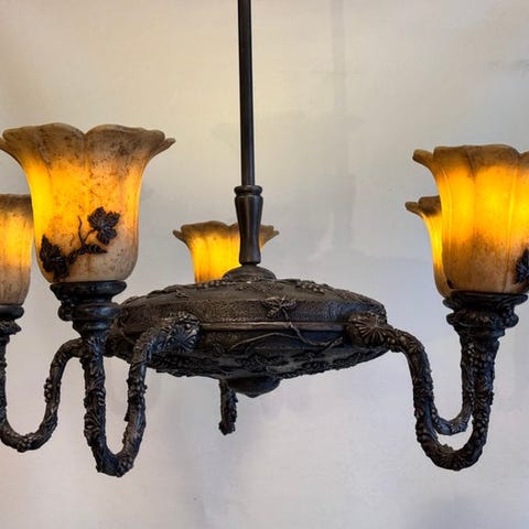 Banci Firenze håndsmedet, sølvbelagt metals loftlampe med tre E14 fatninger i vintage florentinsk stil, 23 cm bred, 23 cm høj, 12 cm dyb, i god brugt stand. Klik på den blå "gå til varen" knap, for at købe eller byde på denne vare. Den samlede pris vil blive vist inden du afgiver dit bud.