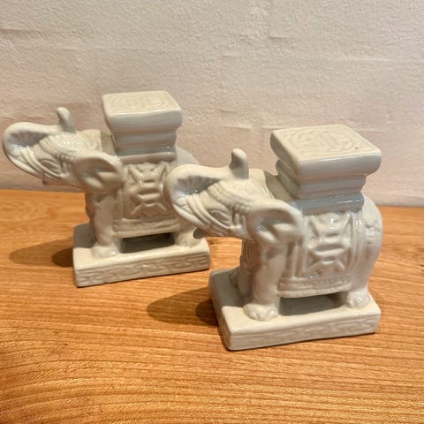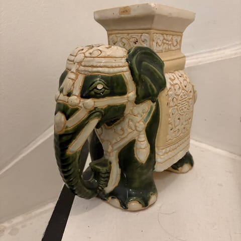 Meget smuk vintage planteholder-elefant i fremragende stand, cremebeige