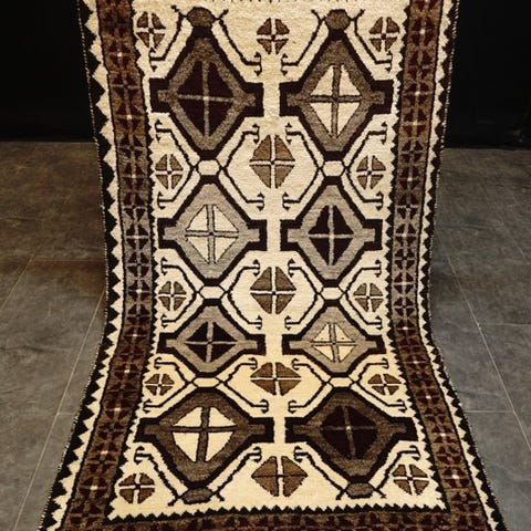 Tæppe med ugle-mønster, 130x80 cm, håndknyttet omhyggeligt, rent.