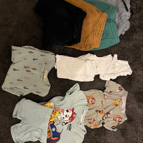 Sommertøj B str 92: 4 shorts, 1 langærmet t-shirt, 3 bodies, 2 sæt sommernattøj (mærker:Soft Gallery, h&m, House of Kids). Fra hjem uden dyr og røg. Vasket uden parfume mv.