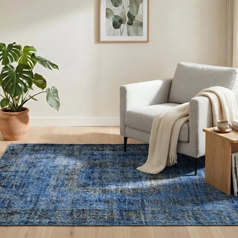 Blåt vintage tæppe fra Türkiye, model Blue vintage, lavet af uld på bomuld, 290 x 180 cm, i meget god stand, professionelt renset, med certifikat. Klik på den blå "gå til varen" knap, for at købe eller byde på denne vare. Den samlede pris vil blive vist inden du afgiver dit bud.