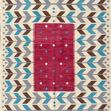 Designer kilimets mål er 289 x 207 cm