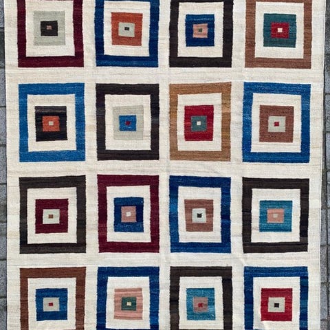 Eksklusiv (ny/ubrugt) håndvævet og håndknyttet designer kilim fra Afghanistan med certifikat for ægthed