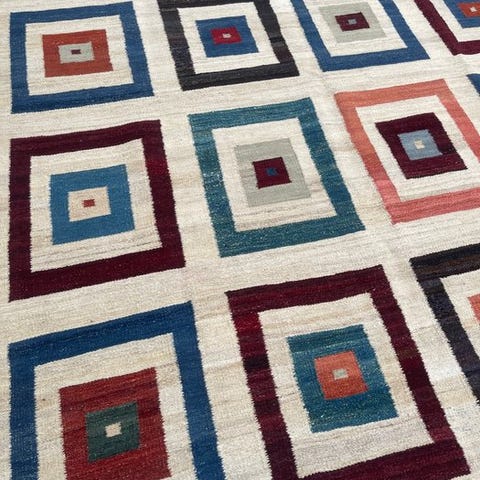 Dette kilim er fremstillet af kvalitets ren uld – et naturmateriale, der er kendt for sin holdbarhed, varme og robusthed. Den fladvævede teknik giver en glat overflade, der gør det særligt vedligeholdelsesvenligt.