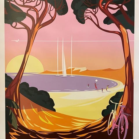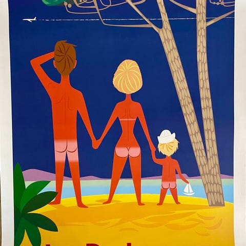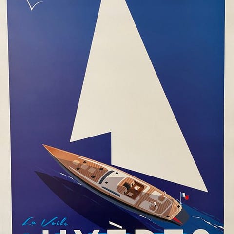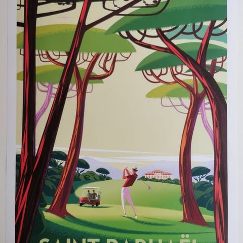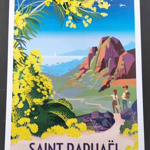 Plakaten udført af Richard Zielenkiewicz, kendt under pseudonymet Monsieur Z i partnerskab med byen Saint-Raphaël for at fremme turismen langs den franske riviera.