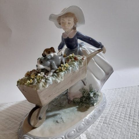 Lladró - Figur - Niña barrriendo junto a farol y gato - Porcelæn