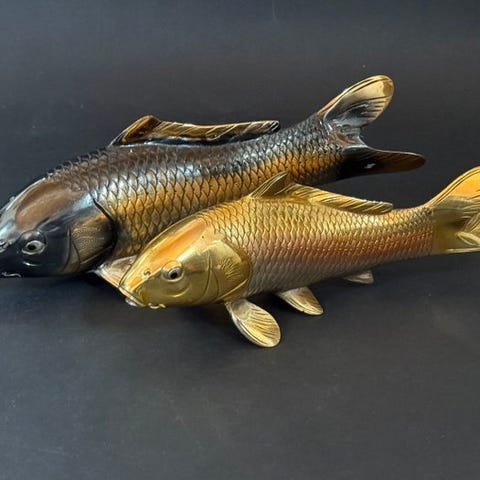 Træskulptur af en katfisk fra Japan, håndsigneret med Kuri-mærket, 12,5 cm bred, 50 cm dyb, 7,5 cm høj, vejer 3 kg, i god stand. Klik på den blå "gå til varen" knap, for at købe eller byde på denne vare. Den samlede pris vil blive vist inden du afgiver dit bud.