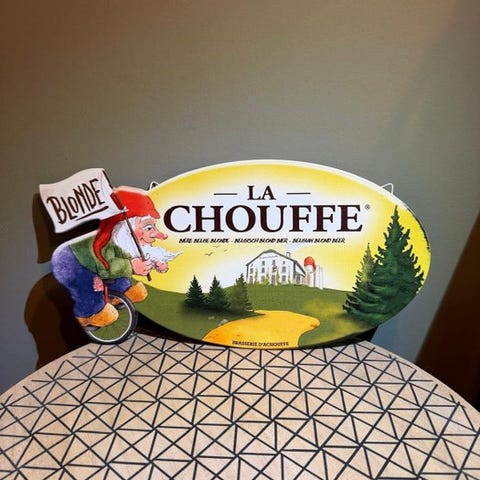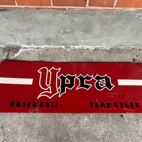 Emaljeret reklameplade Kronenbourg, fremstillet af Emailerie Belge (Bruxelles, mærkning på bagsiden).
