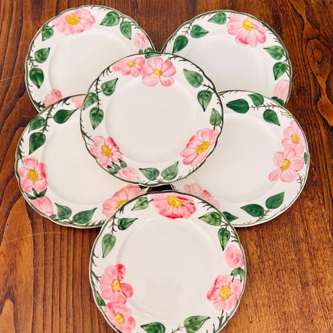 Et smukt sæt bestående af 6 kagetallerkener. Det bliver omhyggeligt pakket og sendt forsikret.