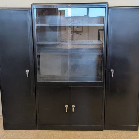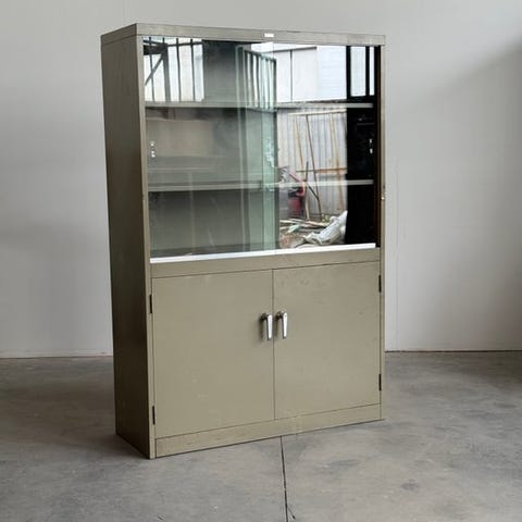 Industrielt metall grønt skab med låsbar dør og nederste hylder, øverste foldbart rum, produceret i Italien mellem 1990 og 2000, dimensioner 84 x 35 x 35 cm. Klik på den blå "gå til varen" knap, for at købe eller byde på denne vare. Den samlede pris vil blive vist inden du afgiver dit bud.