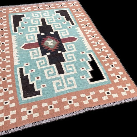 Denne eksklusive designer-kelim er fremstillet i traditionel håndarbejde af ren uld og imponerer med sit varme, jordnære farvespektrum med fine linjer i sort og orange. Det rolige, symmetriske mønster giver struktur og dybde til din indretning, uden at virke påtrængende – en ideel følgesvend til både moderne og klassiske interiører.