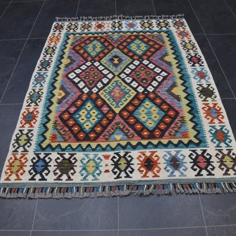 Til tilbuddet hører et vidunderligt afghansk Art Deco-tæppe
