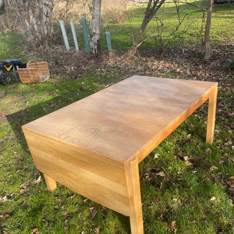 Hylde og klap på den ene side. Sæbebehandlet eg.
