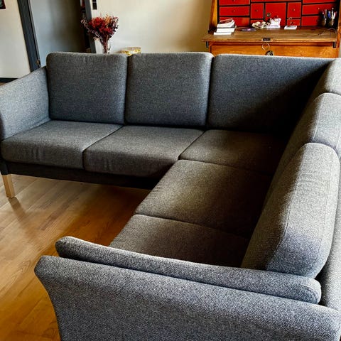 Sofaen er meget lidt brugt og fremstår stort set som ny – ingen slid eller fejl. En rigtig lækker kvalitetssofa, købt hos Danbo Møbler: