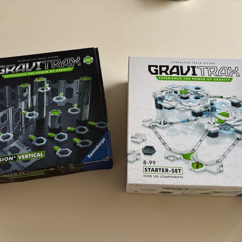 Gravitrax Starter-Set Vertical kuglebane. Interaktivt kuglebane-system, hvor kugler bevæger sig gennem en bane ved hjælp af tyngdekraft. Sættet er et vertical starter-sæt, som gør det muligt at bygge høje og komplekse baner med søjler, skinner og forskellige elementer. Anbefalet alder ifølge æsken: 8-99 år. Velegnet som grundsæt eller som udvidelse til andre Gravitrax-sæt.