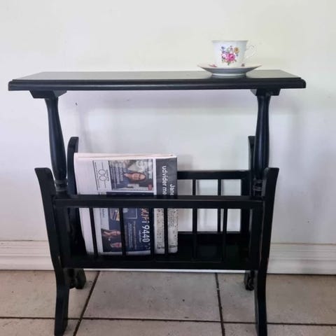 Fint litografi, fineste sidebord med hjul samt en lækker grøn lampe .