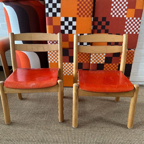 Dansk produceret retrobørnestole, produceret i 1976 i Danmark.