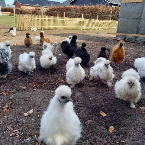 1.2 Race- og farverene hvide dværg silkehøns fra 2025 sælges samlet.
