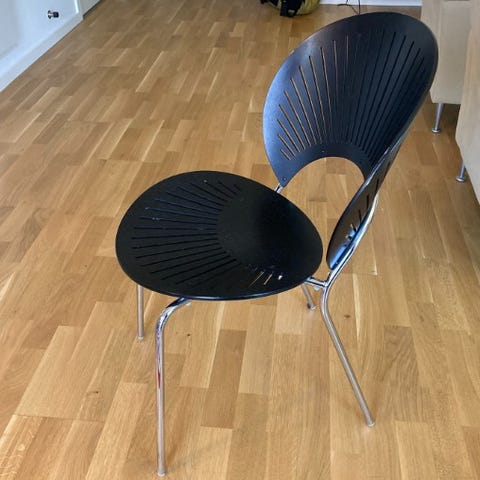 6 stk. trinidad stole i valnød med ben i sort krom sælges helst samlet. De er i meget fin stand. Stolene har været opmagasineret og er først taget i brug for 3 ugers siden.