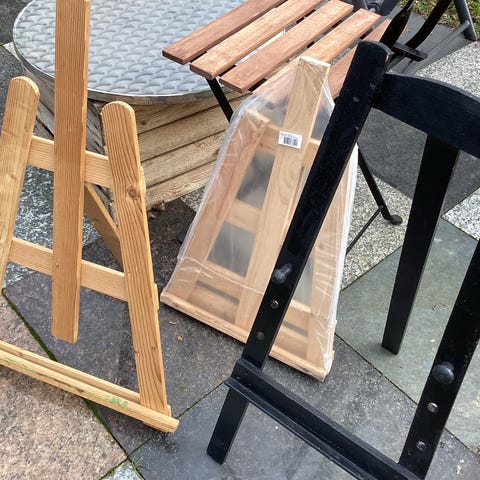 Trækonstruktionen gør staffeliet stabilt og egnet til brug i hjemmet, atelier eller udstillingsrum.