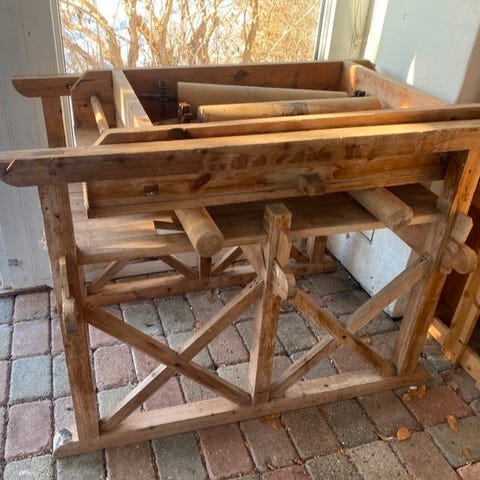 Træ arbejdsbord med skruestik