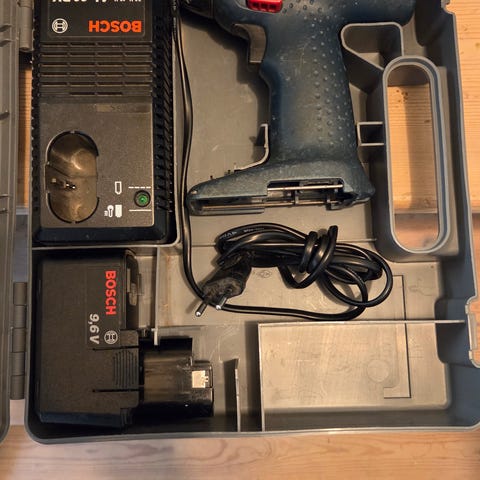 Brugt Bosch GSR12VES-2, bore og skrumaskine, 2 batteirer og lader,funger som det skal, Jeg har et lille hobby værksted hvor alting skal væk