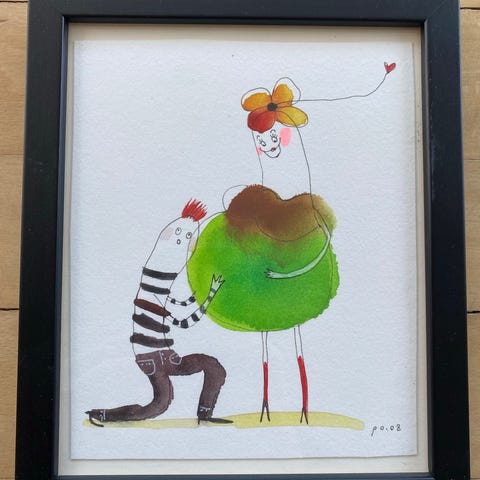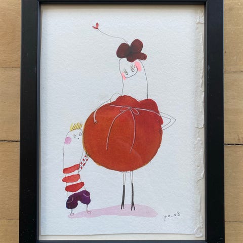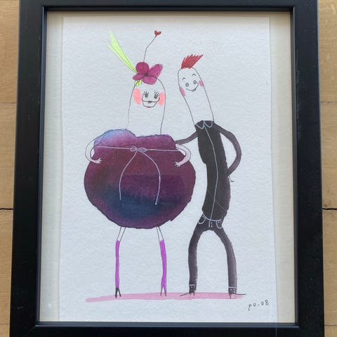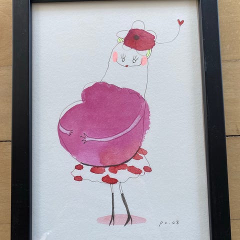 Billedet er indrammet i en sort ramme med hvid baggrund, klar til ophængning på væg