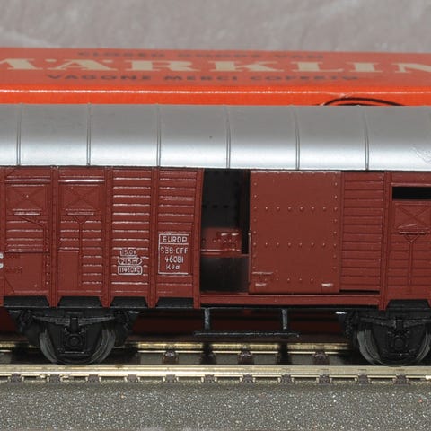 Vognen er brugt. Bortset fra et par små ridse og lidt snavs på taget, fremstår vognen i pæn stand. Der er monteret Märklin bøjlekoblinger. Leveres i original æske.