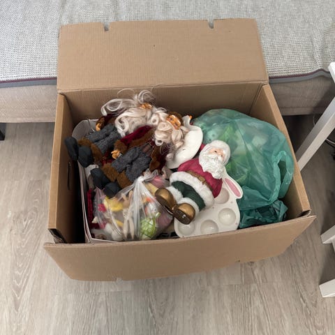 Lot med julepynt der er nisser lyskæder og meget andet der kan være fejl og mangler se billederne som er en del af beskrivelsen