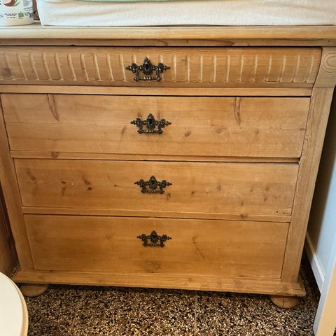 Kommode fra Ikea. Brugt, men i ok stand. Der er brugsspor på top pladen, som sagtens kan males over eller man kan lægge glasplade på. Ellers er den meget fin.