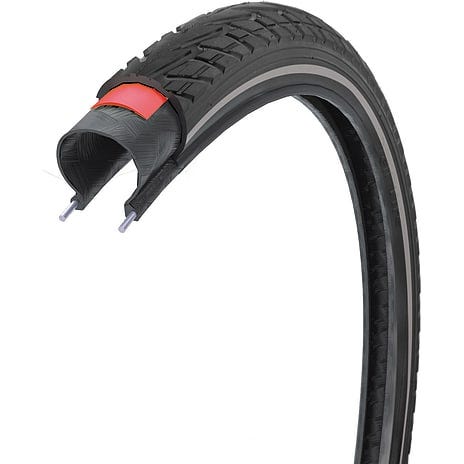 SCO cykeldæk brunt, ekstra forstærket med beskyttelsesbælte under slidbanen. Dækket passer til 700x40C (ETRTO 42-622) ECE-R88 godkendte refleks på dæksiderne. ETRTO 42-622 svarer til en dækbredde på 42 mm, og en diameter på 622 mm. Det er muligt at montere et bredere eller smallere dæk, så længe diameteren er 622 mm, og dækket ikke er smallere end fælgen. Et bredere dæk er også en smule højere, så tjek om der er plads på cyklen.