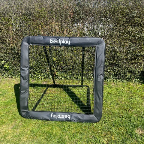 Bestplay fodbold rebounder i sort. Robust metalstel med net og polstret kant hele vejen rundt. Velegnet til træning af afleveringer, førsteberøringer og skud, både i have og på træningsbanen. Justerbare elastikker ved nettet gør det muligt at tilpasse spændingen efter behov.