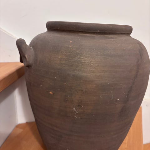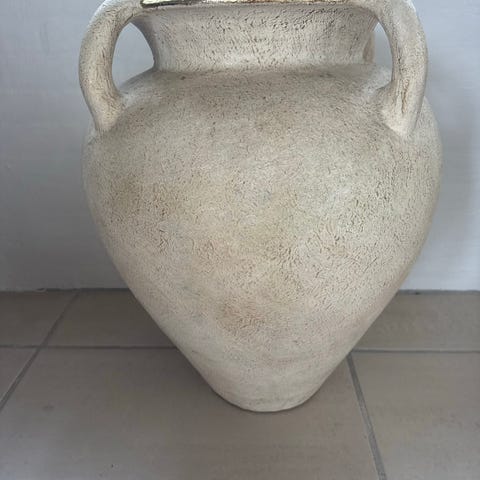 Mål : 84 cm høj, ca 40 cm på det bredeste sted og åbning 20 cm