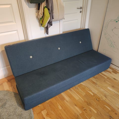 Foldet som en daybed/puf: H: 36 cm B: 50 cm L: 200 cm