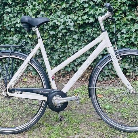 Særdeles let og rustfri model, med alustel og aluhjul. Indvendige Shimano gear. Højt styr. Håndbremse for og fodbremse bag. Køreklar og komplet med kurv, klokke, bagagebærer, støttefod, lygter, reflekser og fastmonteret ringlås med 2 nøgler. Yderst behagelig, rank, høj og flot kørestilling. Passer til høj som lav (dog mest høj), og jeg indstiller styr og sadel så cyklen passer lige til dig. Str. 56 cm. 3 gear. Stelnr.: WMB58606Z. (Ved henvendelse angående cyklen, for hurtigere respons, sms eller ring venligst på 22 13 21 30, eller benyt messenger ved at trykke på "gå til varen" knappen).