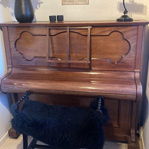 Seiler opretstående klaver i brun træfinish. Traditionelt akustisk klaver med fuldt klaviatur og to pedaler. Kabinettet er udført i træ med klassisk frontpanel og opretstående konstruktion, velegnet til placering op ad væg i stue, øvelokale eller musikrum.