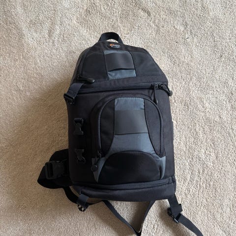 Fin Lowepro kamerataske/rygsæk med indbyggede fleksible rum til kamera. Smart åbning i siden der gør det nemt at tilgå kameraet. Mange smarte finesser