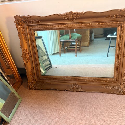 Spejl rektangulært med ornamenteret guldfarvet ramme