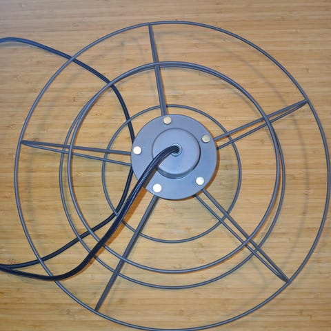 Pendel af forkromet metal og skærm af foldet plast, lampen er designet af Philip Bro Ludvigsen, produceret hos Le Klint.
