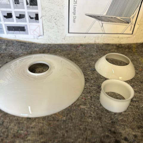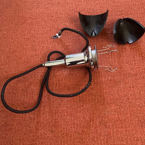 Louis Poulsen PH 4/3 fatning til glaslampe designet af Poul Henningsen. Fatningen er beregnet til PH 4/3 glas og fungerer som base/holder til lampeskærmene. Udført i metal med cylindrisk sokkel og beslag til montering af de karakteristiske PH-skærme. Velegnet som reservedel eller opgradering af eksisterende PH 4/3 lampe med glasdele.