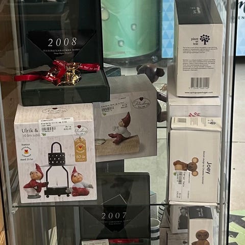 Sælger diverse juleting og lidt blandet andet som Erik Bagger skål og Georg Jensen skål på stand 809 hos Kirppu tilst ved Århus