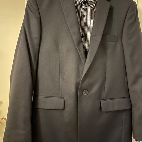 Virkelig flot mørkeblå blazer til konfirmanden mange lommer, også inderlommer størrelse er XS. Brystmål er cirka 45 cm og længde er cirka 66 cm. Mærket er Daniel de Prato fra Italien