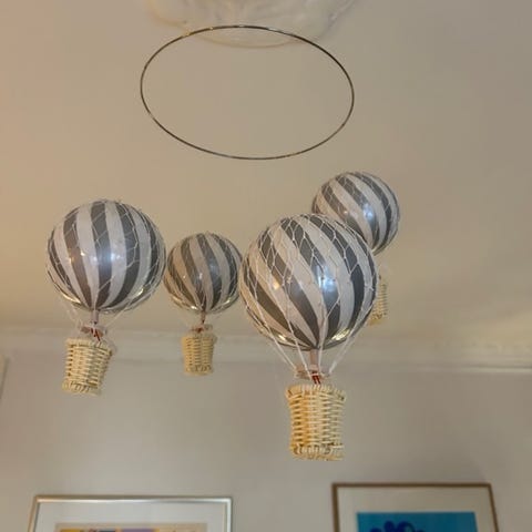 Authentic models uro med luftballoner, brugt over tremmeseng.