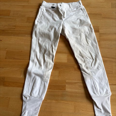 Hvide CT Ridebukser med elastisk talje og bæltestropper. Modellen har forlommer, heraf én med lynlås, samt knægrip.