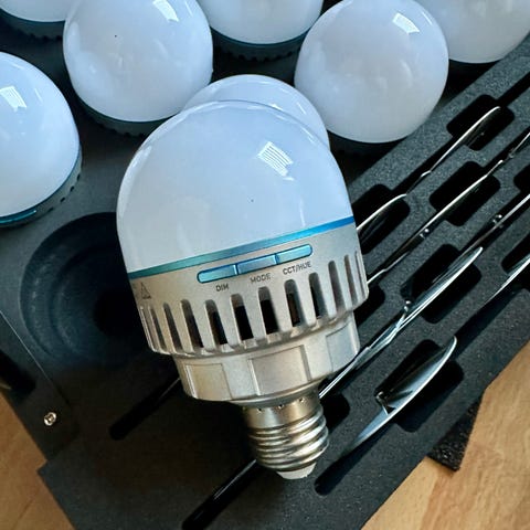 Kompakt og alsidig LED-lampe med 7.480 lux, justerbare farver og trådløs styring ideel til video, content creation og filmproduktion.